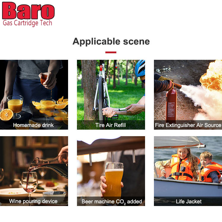- Kartuša/cilinder/kanister/rezervoar CO2 vrhunske kakovosti, vzdržljiv, enostaven za namestitev in odstranitev.