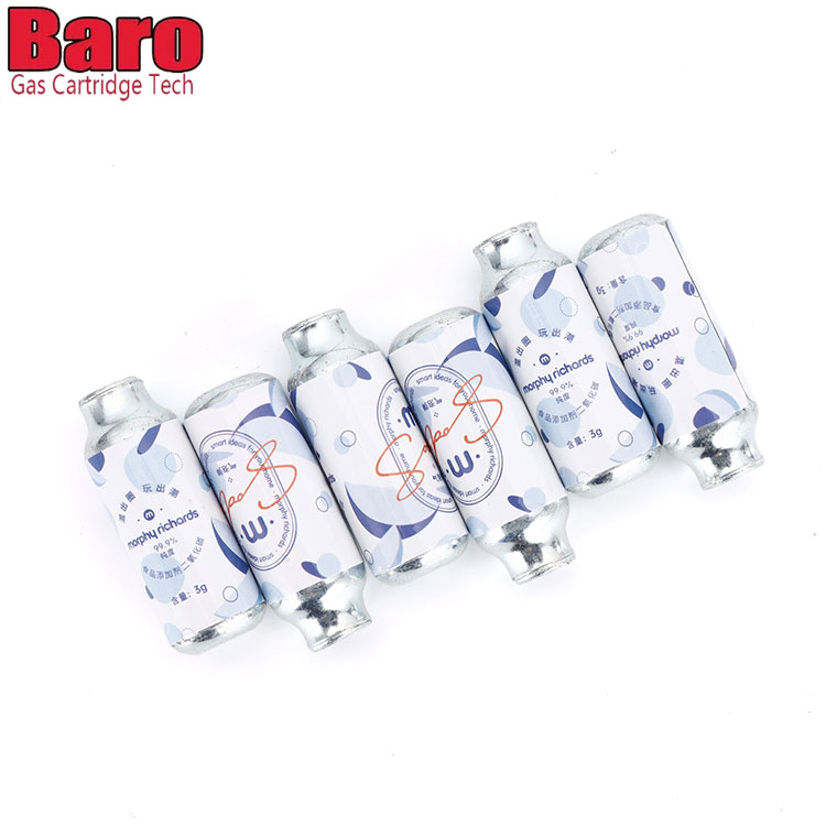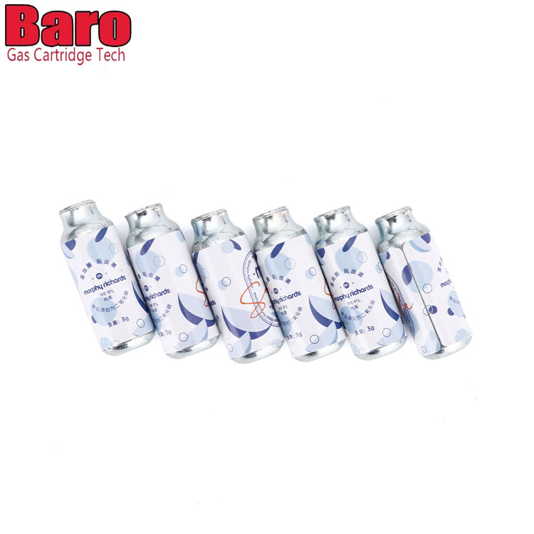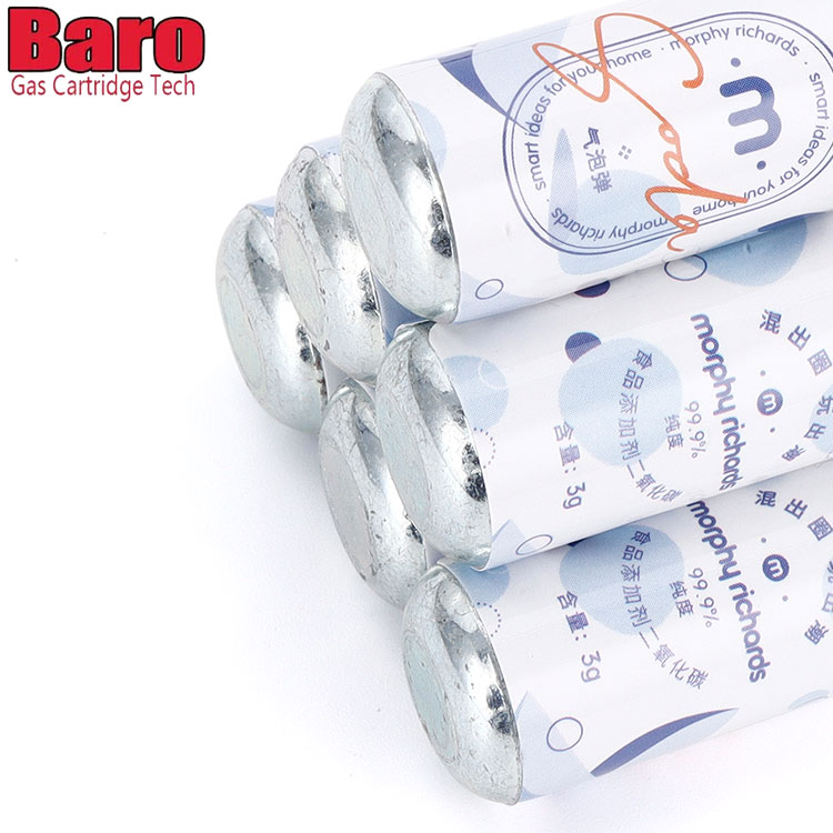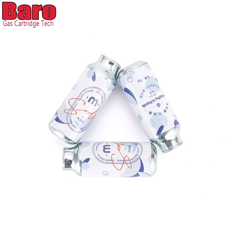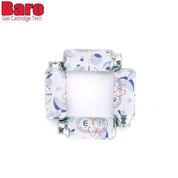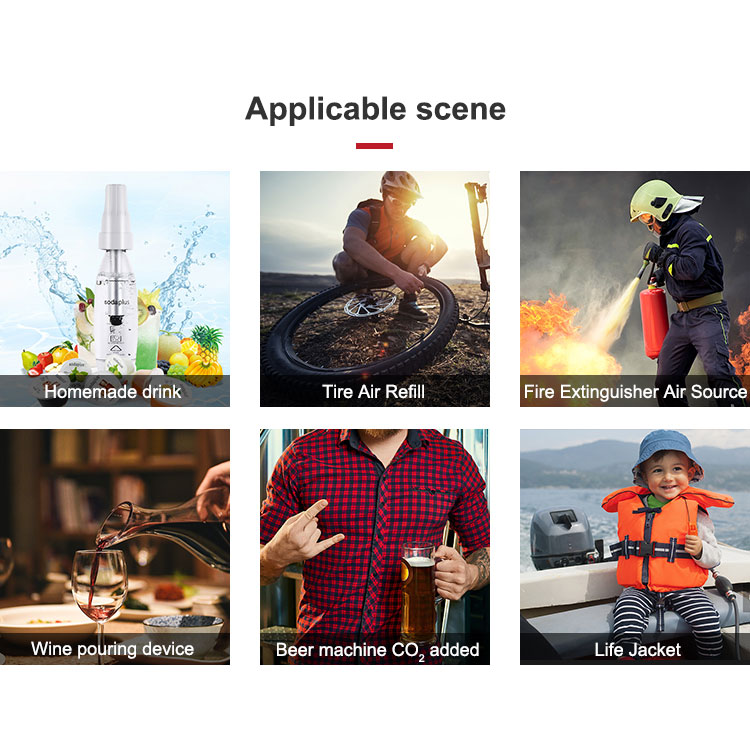 - Kartuše CO2 za živilsko kakovost za vodo Seltzer so lahko združljive z aparatom za sodo na trgu in drugimi polnilniki za ogljikov dioksid, vsaka jeklenka vsebuje 3 g čistega ogljikovega dioksida za živila, kar je najboljša izbira za izdelavo sode.